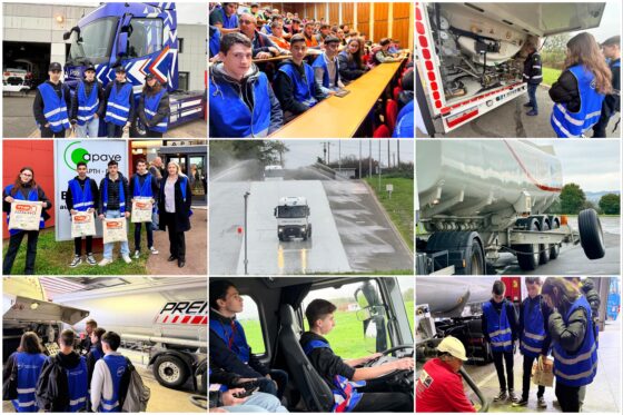 Quatre élèves de Terminale Bac Pro Conduite Routière — Léa, Nolan, Hugo et Gwendal — accompagnés par Estelle Péron et Dominique Dubreuil, ont passé la journée au Centre Technique de Formation du Creusot. Cette immersion leur a permis d’approfondir leurs connaissances en matière de sécurité et de réglementation du transport de matières dangereuses (TMD) à travers des ateliers interactifs et pratiques. Au programme : Kahoot thématique sur les TMD, découverte du matériel spécifique, exercices de perte d’adhérence, d’évitement et de renversement, rencontres avec des professionnels du transport et de la logistique.
