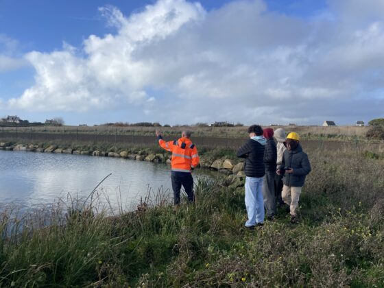 – Visite de la STEP par Lagunages à Pouldreuzic Penhors. Le lagunage est une technique extensive de traitement des eaux usées constituée de 3 bassins étanches en série où se développent bactéries, algues et zooplancton.