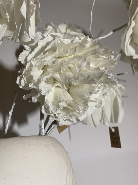 Les élèves de 3PMET ont réalisé un vase décoratif orné de pivoines en papier crépon.