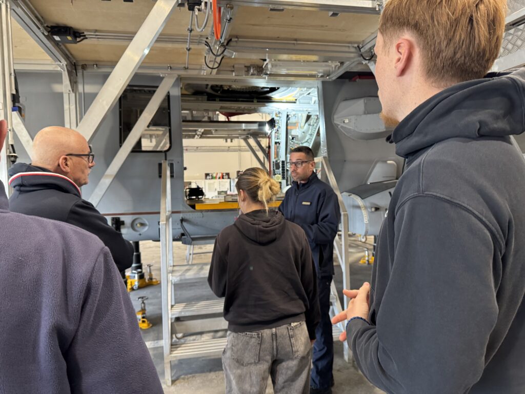 Accueillis chaleureusement par l’équipe de la Marine nationale, les élèves ont pu découvrir les différents ateliers de maintenance de la base, ainsi que les spécificités du travail sur les hélicoptères NH90. Cette visite immersive leur a permis d’en apprendre davantage sur les missions du mécanicien-technicien en aéronautique, qu’il soit embarqué sur les navires ou affecté aux ateliers de maintenance à terre.